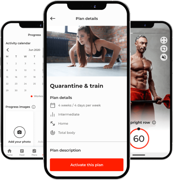 Workout statistics and the ability to upload progress photos for tracking results.